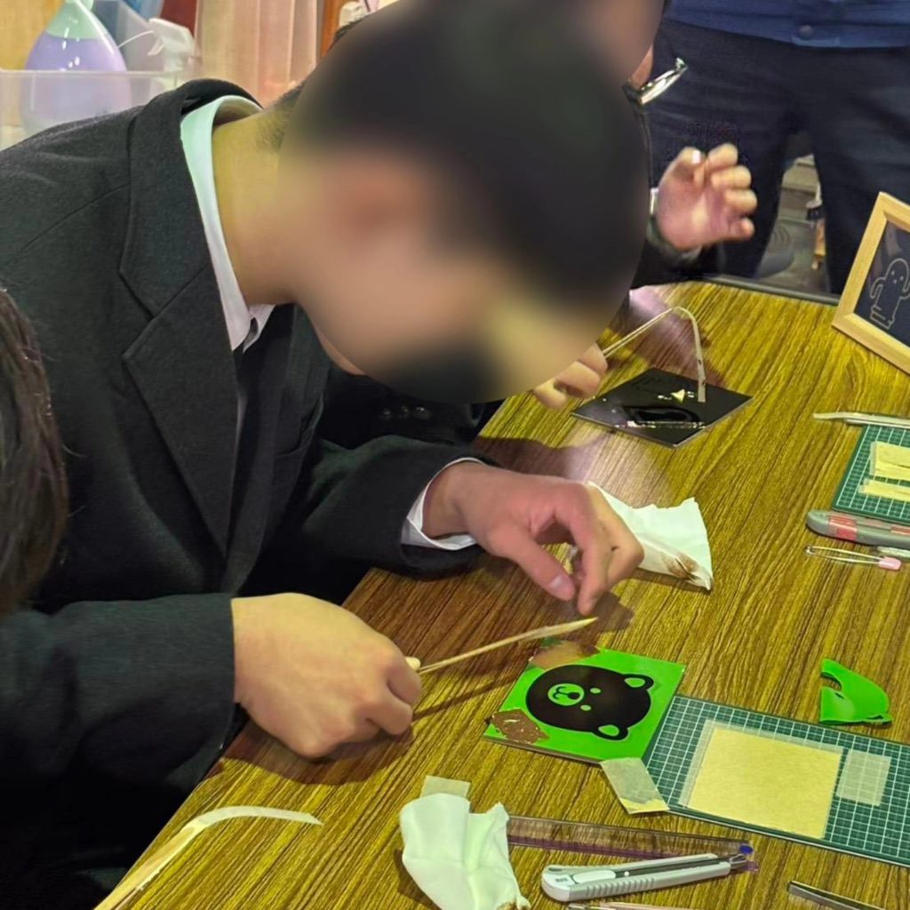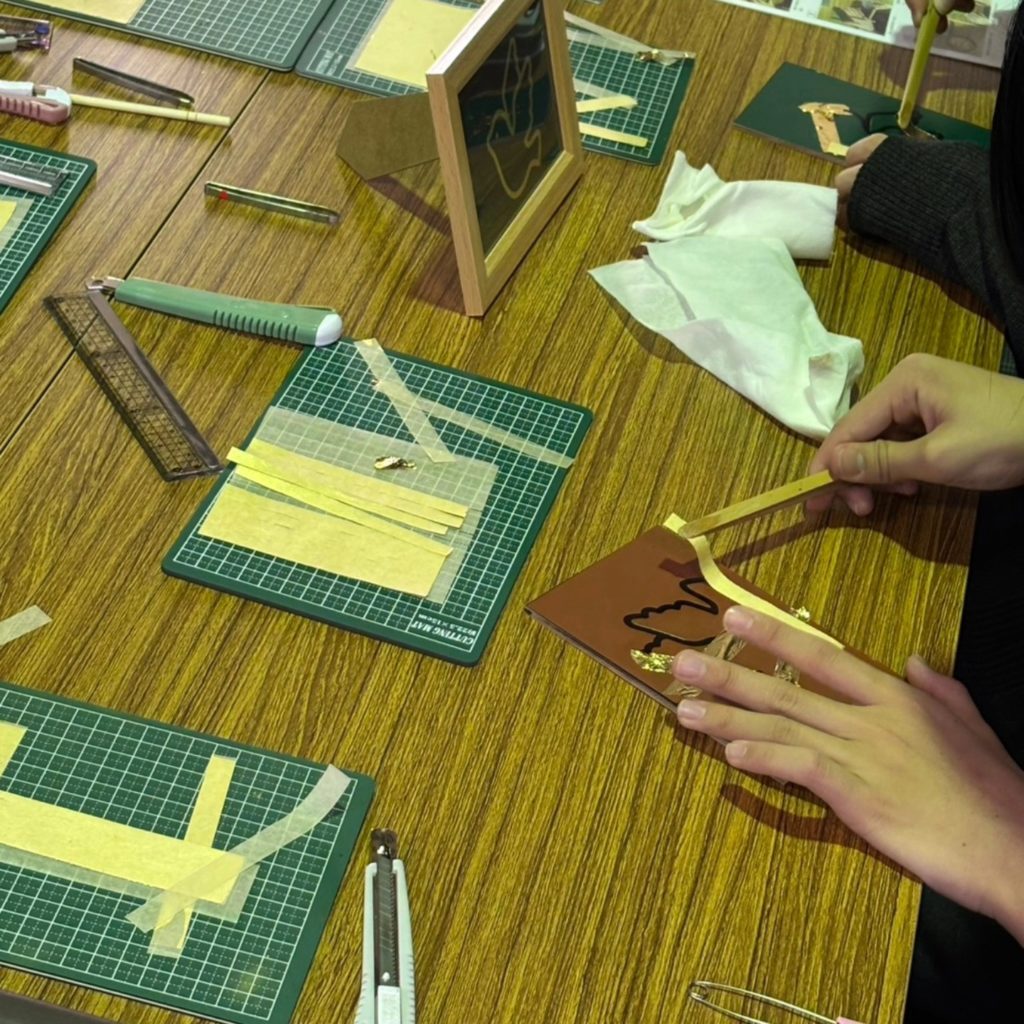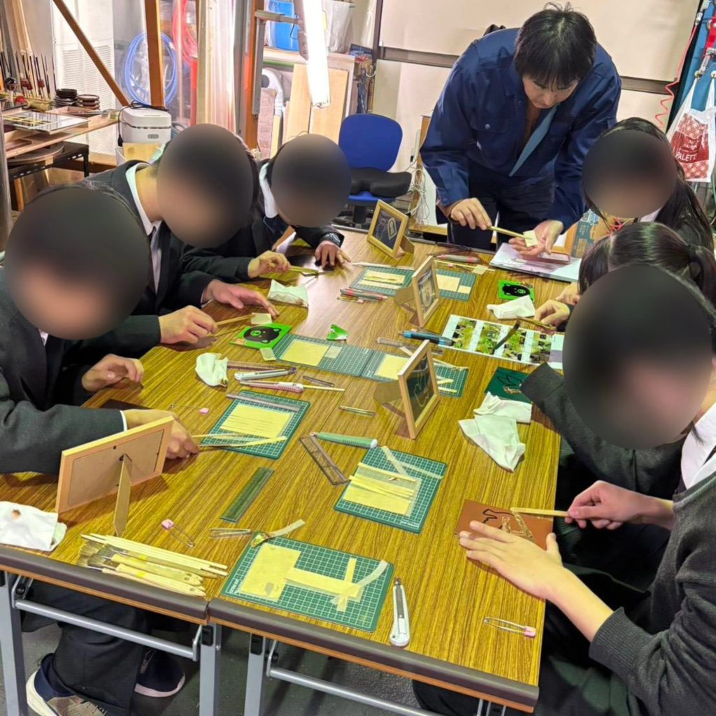 埼玉県の中学生が探究授業の一環で修学旅行中に金箔押し体験に来てくれました。伝統的工芸品に興味を持ってくれて嬉しかったです